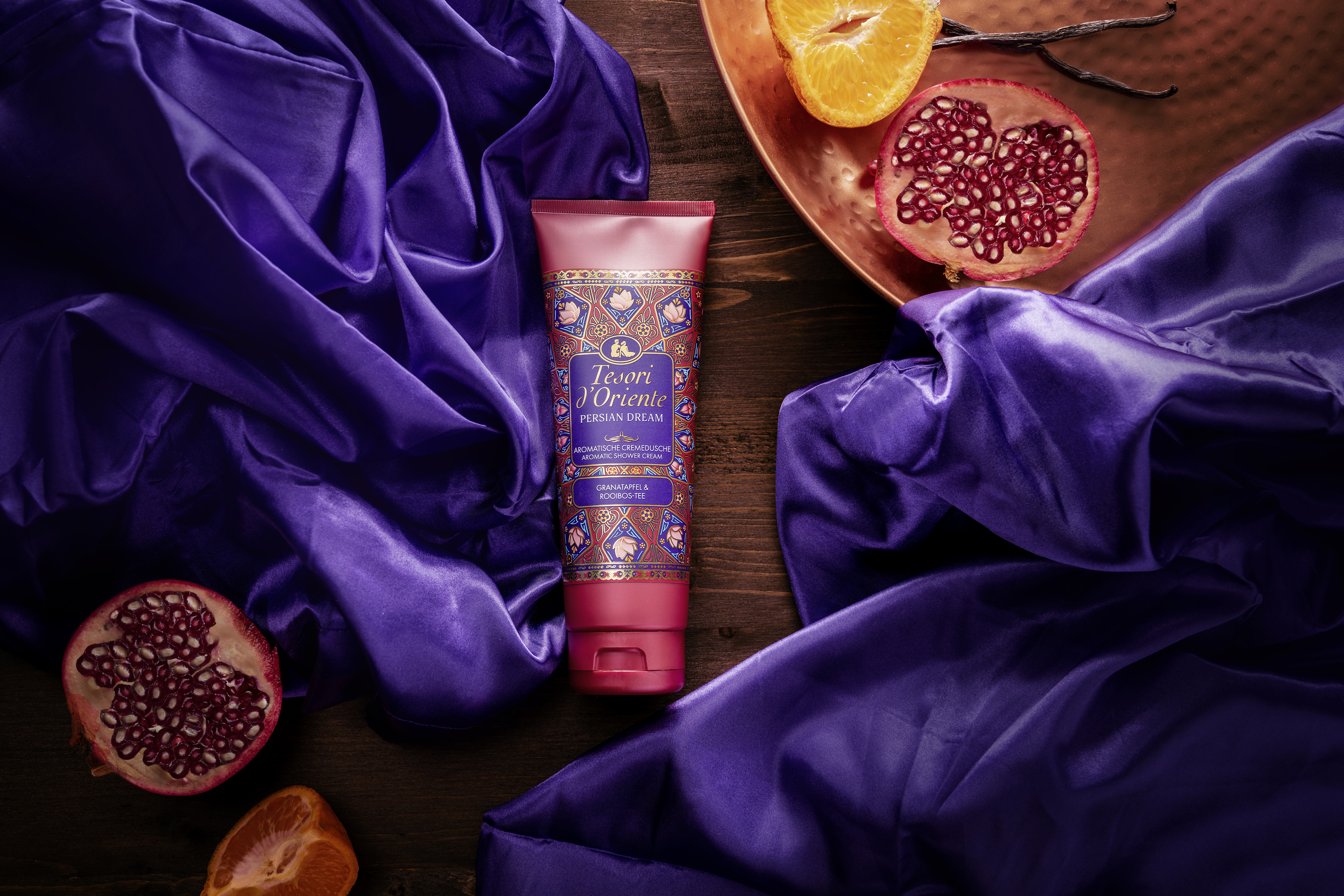 Die Persian Dream-Reihe von Tesori d‘Oriente verzaubert mit sinnlichen Aromen aus Tausendundeiner Nacht. Tauche ein in die zauberhafte Welt des alten Persiens und lasse Dich von prächtigen Palästen, lichtdurchfluteten Innenhöfen und prunkvollen Gärten mit tausenden Brunnen verzaubern. Kristallklares Wasser, violette Obstbäume und Blumen mit betörendem Duft machen die persischen Gärten zu einem Sinnbild zeitloser Schönheit und Eleganz