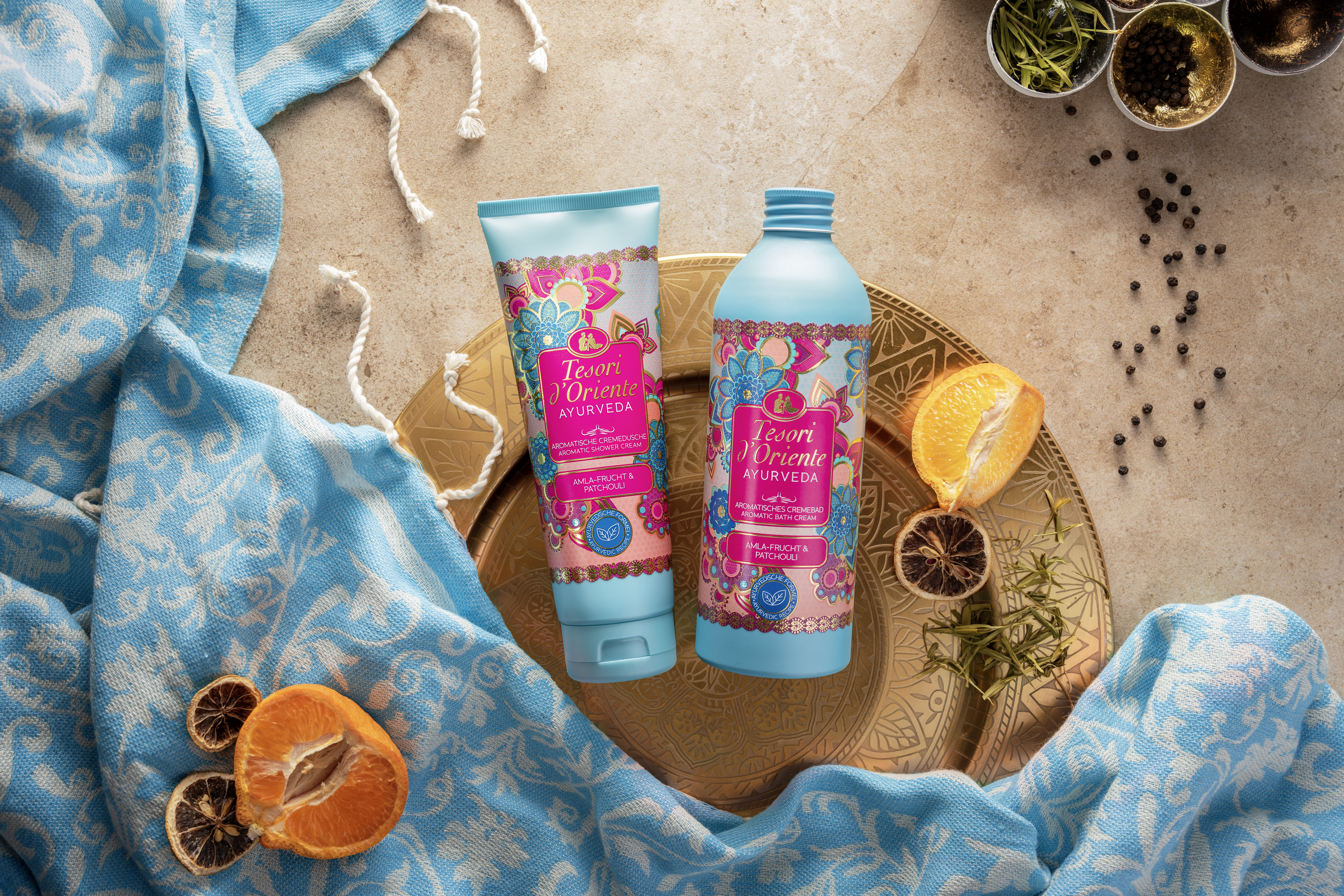 Die Ayurveda-Reihe von Tesori d’Oriente ist von der über 5.000 Jahre alten traditionellen indischen Heilkunst Ayurveda inspiriert – einer ganzheitlichen Lebensphilosophie, die Körper und Geist in Einklang bringt. Auf Grundlage dieser „Wissenschaft des Lebens“ hat Tesori d’Oriente einzigartige Rezepturen und Düfte entwickelt, die sowohl Deine Haut pflegen als auch Wohlbefinden für die Sinne schaffen.