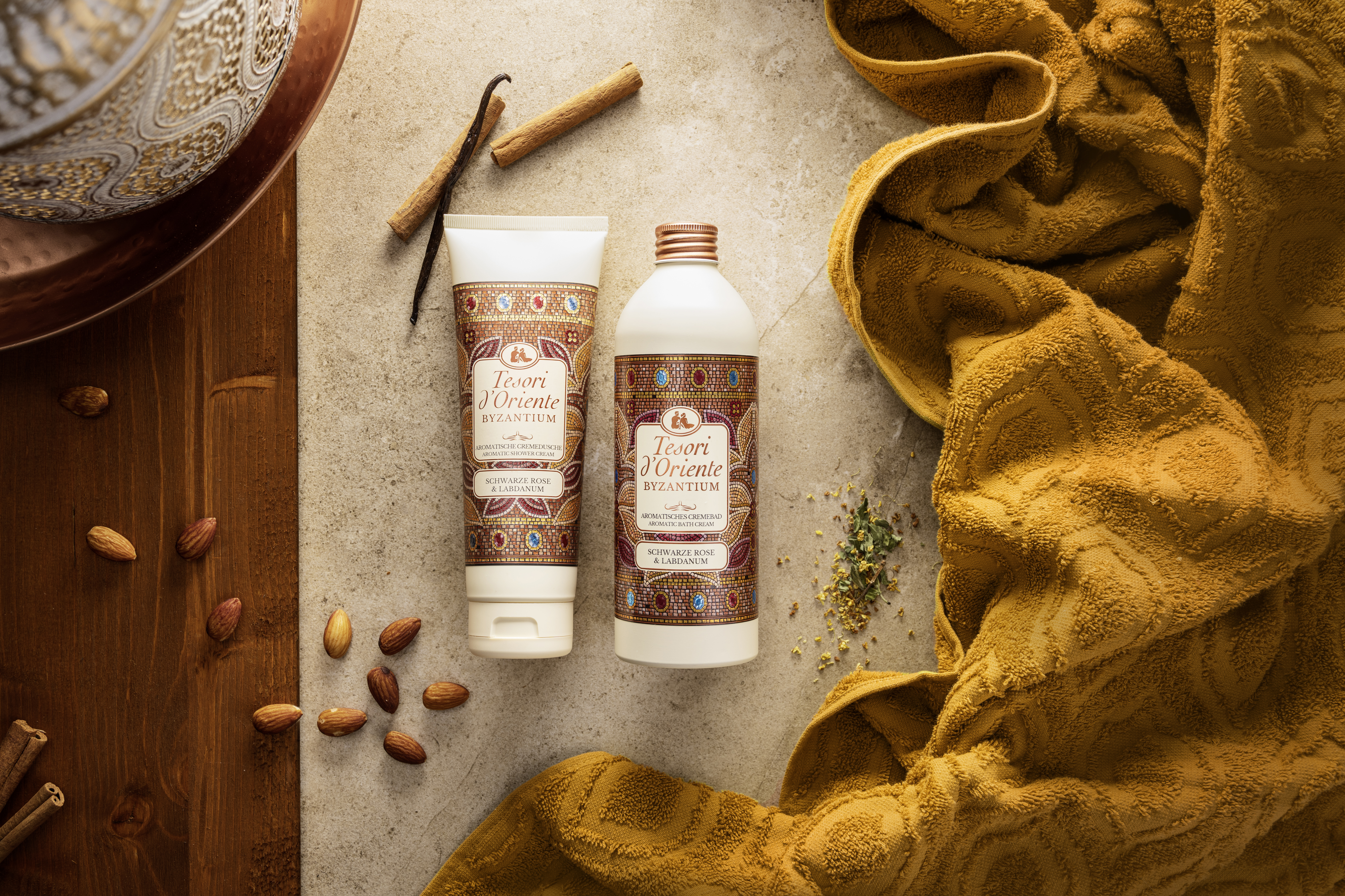 Das Byzantium Ritual von Tesori d‘Oriente ist inspiriert von einer imaginären Reise in die legendäre Stadt Byzanz - dem heutigen Istanbul - mit seinen prächtigen Palästen, die von den Düften seltener Blumen und kostbarer Harze durchdrungen wurden.
